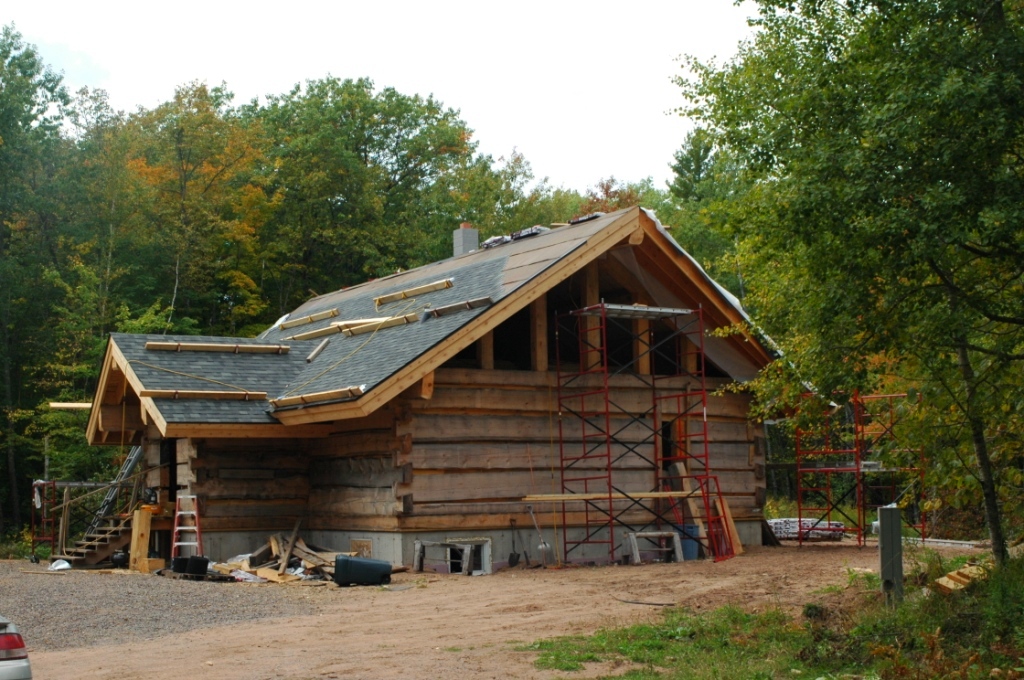 We built a scribed, dovetail notched home at our log yard in Seeley. After completion in the building yard, we numbered the logs, dis-assembled the logs, put them on a semi, trucked them to the permanent site, and re-assembled the logs on the owner’s foundation.