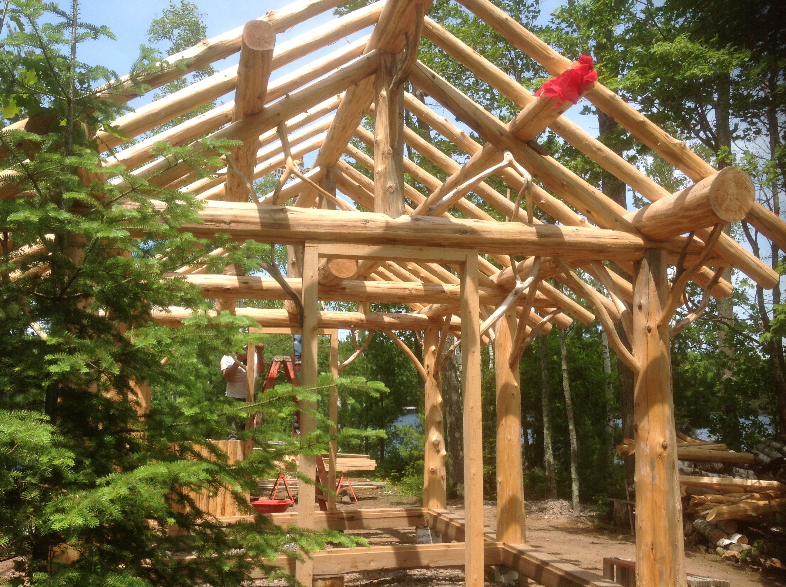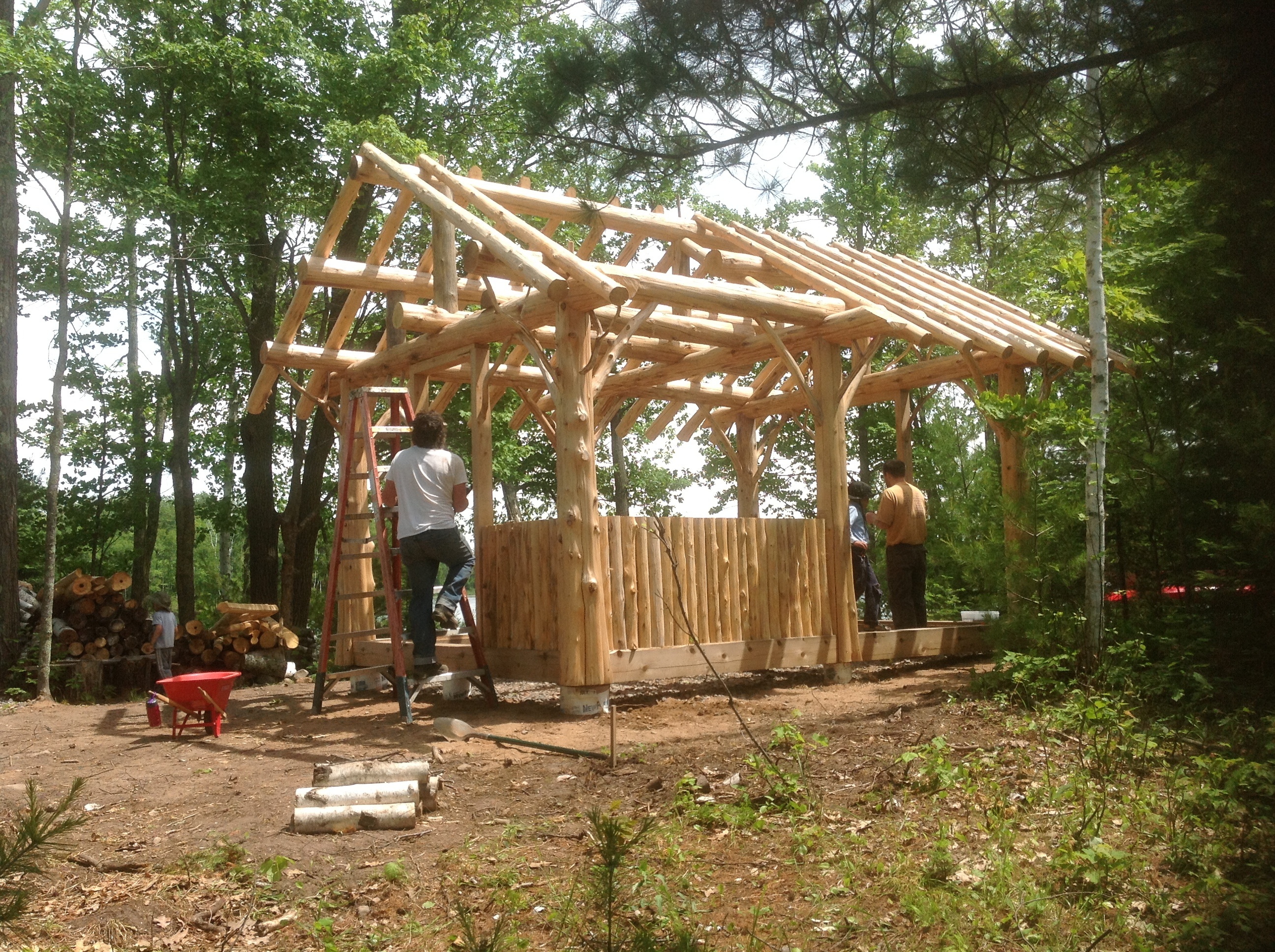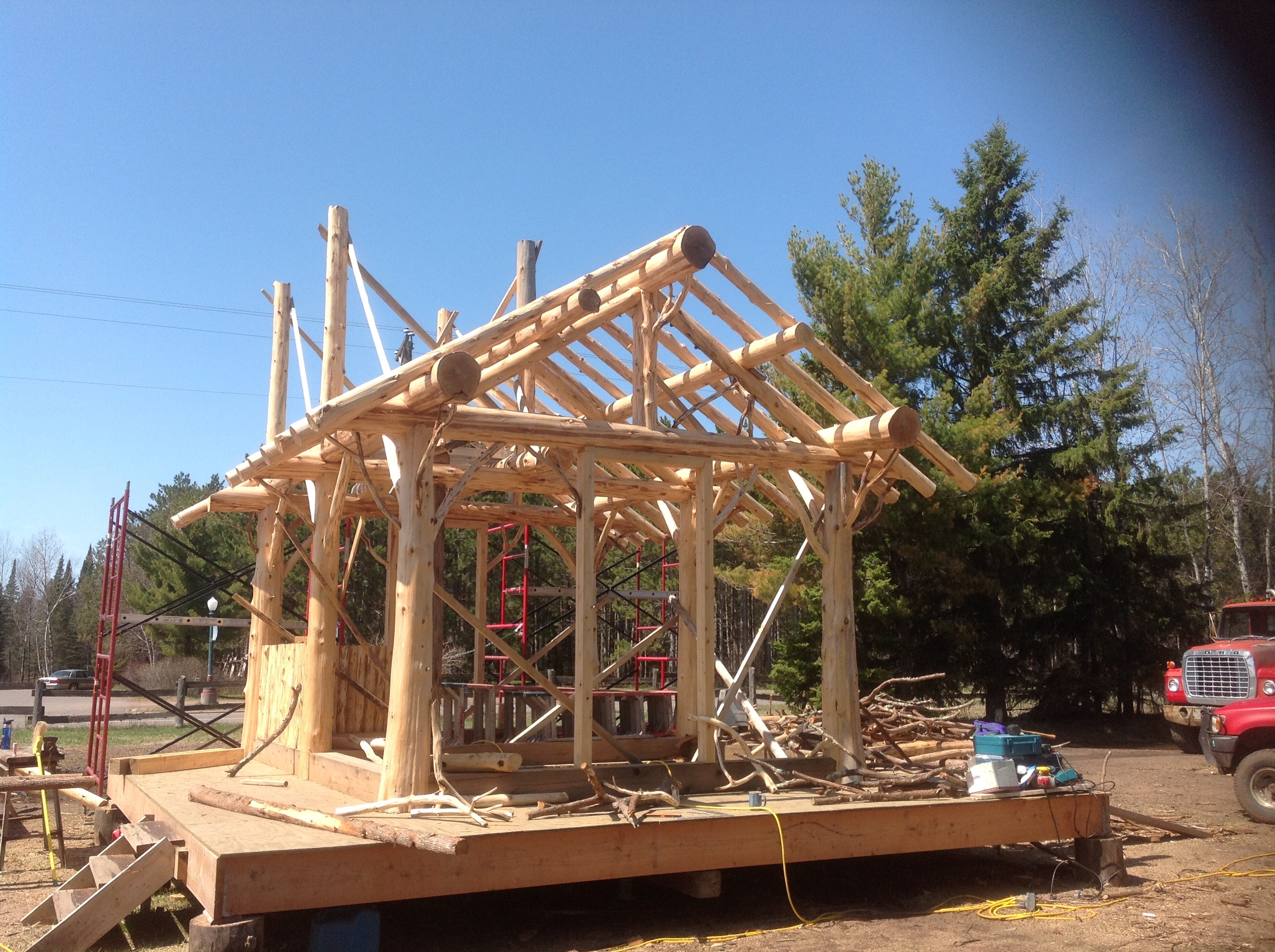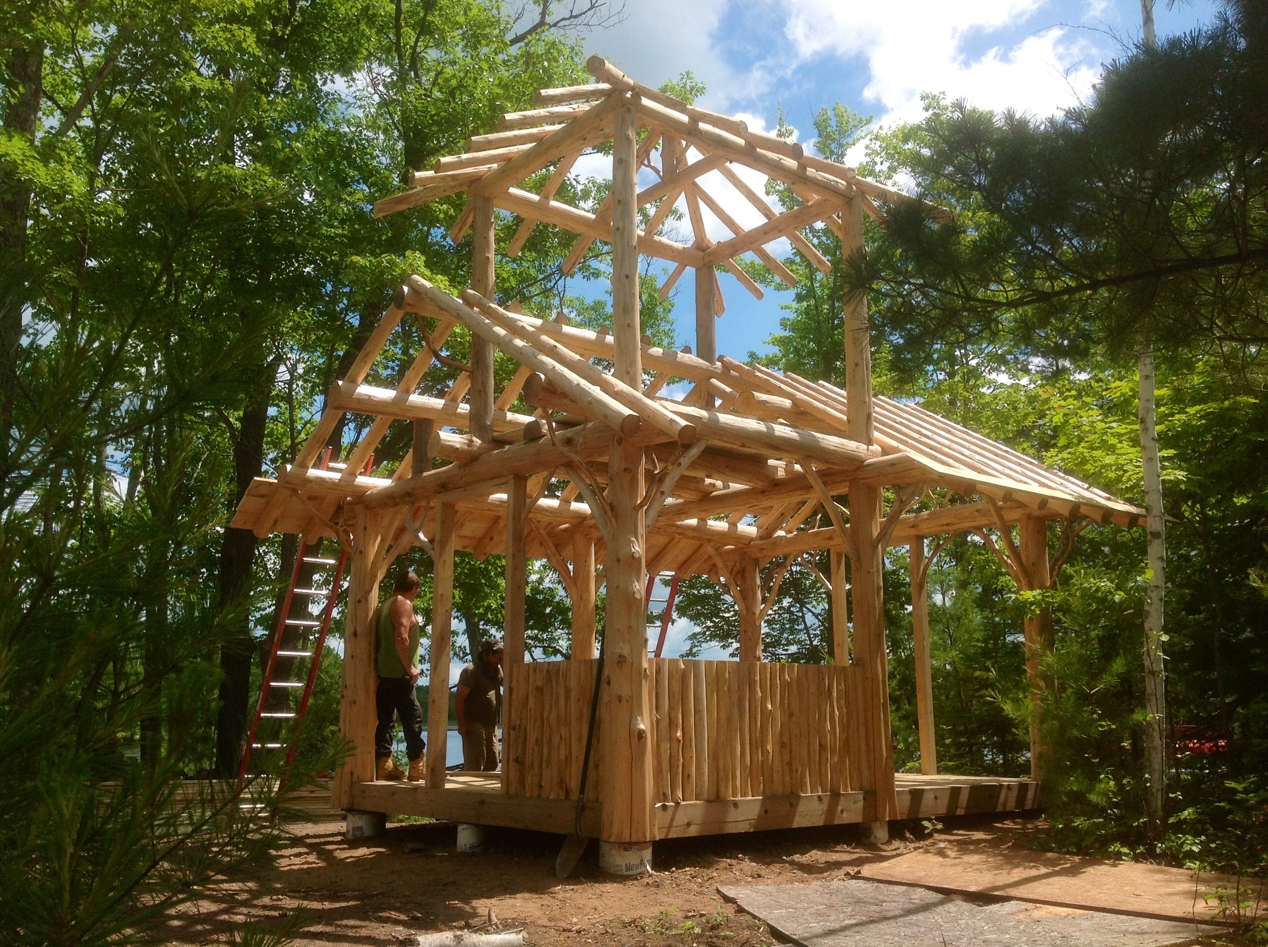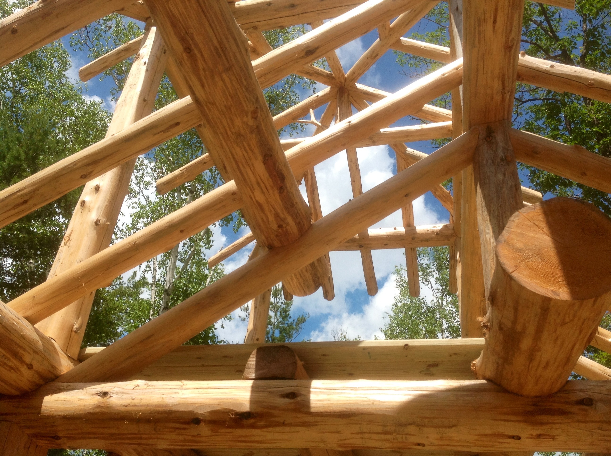 We built a unique screened Log gazebo and set it on a dovetail notched base frame: