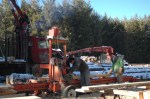 We have a Wood Mizer band saw mill with an extension that allows us to saw out to 40′. We will custom saw our material for you…. from timbers, log siding, ridge poles, purlins, stair treads……. you name it!